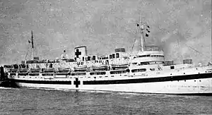 After sailing for the Clyde and back to New York in July on its first mercy mission, Blanche F. Sigman moved to its new homeport of Charleston in August 1944. Sailing later that month, the Sigman headed to the Mersey and Liverpool. In October the ship sailed for Gibraltar, Oran, and Leghorn. In December, it repeated its previous voyage but also stopped at Naples as well, eventually making its way back to Charleston in January 1945. Throughout 1945, the hospital ship made six transatlantic treks, visiting Marseille three times, Naples, Oran, Gibraltar, Milford Haven, Wales, Avonmouth, Cherbourg, and Horta. The Sigman's sixth mission of the year was a return trip to Cherbourg that ended with a return to its new homeport of New York.[1]