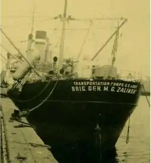 USAT Brigadier General M. G. Zalinski was a U.S. Army transport ship that served in World War II. It sank in 1946 in the Grenville Channel in British Columbia's Inside Passage.[1][2] The crew were rescued by a tug boat and the SS Catala passenger steamer, but the cargo of bombs and oil went down with the ship.