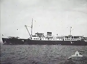 Don Esteban, delivered in 1936, was the first and smaller of two Krupp built motor ships of the De La Rama Steamship Company, Iloilo, Philippines in inter-island service.[4][5] The ship was under a bareboat charter by the United States Army as a transport on 30 October 1941 for use in pre positioning U.S. Army Air Corps (USAAC) fuel and munitions in the southern Philippines, Netherlands East Indies, Singapore and Australia.[3][6][1] After the Japanese invasion of the Philippines she evacuated personnel from the Army headquarters, including General MacArthur, from Manila to Corregidor on Christmas Eve, 1941.[7] The ship was lost off Mindoro on 2 March 1942 while continuing its supply missions.[8]