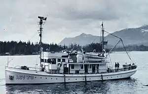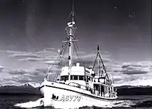 USC&GS E. Lester Jones (ASV-79) was a survey ship that served in the United States Coast and Geodetic Survey Pacific service, mainly in Alaskan surveys, from 1940 to 1967. The vessel was built by Astoria Marine Construction Company at Astoria, Oregon, completed and entered Coast and Geodetic Survey service in 1940. E. Lester Jones was wooden construction, 88 ft (26.8 m) in length, 21 ft (6.4 m) beam with 8 ft (2.4 m) draft and displacement of 150 tons.[1][2] The 1941 assigned call letters were WETH.[2]