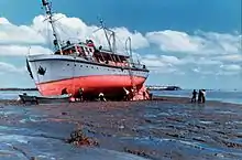 Astoria Marine Construction Company won the bid submitted on August 18, 1938 for construction to a design by H. C. Hanson of Seattle, who later designed sister ship Patton.[3][4] Astoria Marine planned to build the vessel with treated timber obtained from the Creosote Western Company whose owner put money toward a construction bond. The actual cost of construction was $22,540.58 above the contract price which led to a legal dispute over tax losses.[3] Astoria Marine, with construction of this vessel, became the first company to use all pressure treated wood in construction of a wooden vessel as well as proving it could fulfill government contracts leading to wartime construction of wooden vessels.[5] The site was listed 8 January 2014 on the National Register of Historic Places due to its World War II and Korean War construction and repair work.[6]