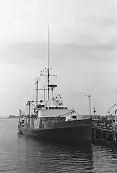 Crawford had been designed specifically for prohibition enforcement service and assumed Rum Patrol duty 27 March 1927 with a temporary home-port of Sault Sainte Marie, Michigan and later a permanent station on 28 September 1927 at Two Harbors, Minnesota.[5] Her routine consisted of picketing liquor laden "mother ships" and preventing them from offloading prohibited cargo to smaller contact boats that were used to deliver liquor to shore.[8] With the end of prohibition, she assumed a more traditional role of a Coast Guard cutter, that of search and rescue, law enforcement, merchant vessel inspection, and defense training.[Note 1][9] In 1937, Crawford was assigned the home-port of Buffalo, New York. In mid-1941 Crawford was converted for use to service aids-to-navigation due to a shortage of buoy tenders but was later transferred to U.S. Navy control with patrol duties out of Philadelphia, Pennsylvania and reconfigured as a sub-chaser.[10]