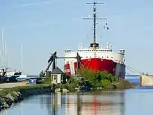 USCGC Mackinaw (WAGB-83) is a 290-foot (88 m) former Coast Guard icebreaker on exhibit as a museum ship at the Ice Breaker Mackinaw Maritime Museum in Mackinaw City, Michigan. The vessel has been known as the "Queen of the Great Lakes" and "The Largest Icebreaker on the Great Lakes"; the site states that "she was built ... during World War II to meet the heavy demands of war materials and transportation during the winter months".[3]