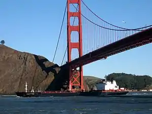 ![]() USNS Samuel L. Cobb, beneath the Golden Gate Bridge, San Francisco Bay | |