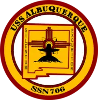 USS Albuquerque (SSN-706), a Los Angeles-class attack submarine, was the second ship of the United States Navy to be named for Albuquerque, New Mexico. The contract to build her was awarded to the Electric Boat Division of General Dynamics Corporation in Groton, Connecticut on 31 October 1973 and her keel was laid down on 27 December 1979. She was launched on 13 March 1982 sponsored by Mrs. Nancy L. Domenici, and commissioned on 21 May 1983.[1][2]