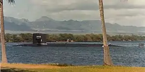 Aspro returned to Pearl Harbor in October 1989. As she rounded the bend into the submarine base, the other moored submarines, led by her sister ship USS Tautog (SSN-639), sounded their whistles for over four minutes, welcoming Aspro back to her home port.