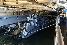 In May 2016, Bataan conducted well deck operations with the Mark VI patrol boat, demonstrating the capability to launch and dock the 85 ft patrol boat with an amphibious assault ship. This was the first time the Mark VI operated out of an LHD and the second time it operated out of a well deck overall. [10]