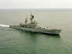 Originally called a "destroyer leader" or frigate (DLG), in 1975 she was re-designated a cruiser (CG) in the United States Navy 1975 ship reclassification.