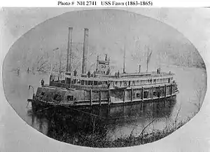 Fawn, a stern wheel steamer, was launched in 1863 at Cincinnati, Ohio, as Fanny Barker. She was commissioned 11 May 1863 and purchased by the Navy 13 May 1863, Acting Master J. R. Grace in command. She was renamed Fawn 19 June 1863.