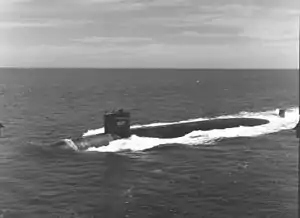 Guardfish was positioned at periscope depth near the Soviet's largest Pacific naval base. Late on the evening of 10 May a surface contact was detected standing out the channel at high speed cutting across the normal channel boundaries and heading almost directly for the waiting Guardfish. As the contact closed in the growing darkness it was visually identify as a Soviet Echo II-class missile submarine. This class displaced 5,000 tons, was powered by a nuclear reactor, and carried eight Shaddock surface-to-surface missiles, which could be fired at targets up to 200 miles (320 km) away. Guardfish followed. Soon the Echo submerged and headed southeast at high speed.