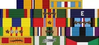 | Vietnam Service Medal with 14 service stars | Southwest Asia Service Medal with 2 campaign stars | Humanitarian Service Medal |