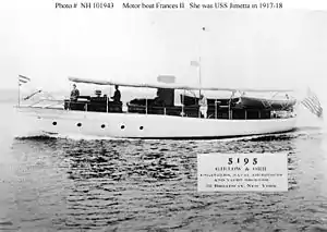 - Department of the Navy Naval History and Heritage Command Online Library of Selected Images: Civilian Ships Frances II (Motor Boat, 1915); Later renamed Jimetta. Was USS Jimetta (SP-878) in 1917–1918