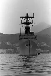 | Propulsion | 4 × General Electric LM2500 gas turbines, 2 shafts, 80,000 shp (60 MW) |