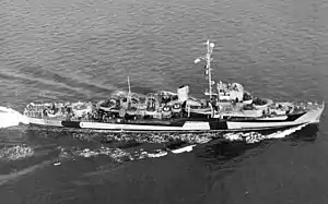 Sources differ as to the service of Riquelme in the Chilean Navy. While some sources state that Riquelme was an operational commissioned unit from 1966 until 1973, when she was used as a source of spare parts for her three sister ships; Serrano (APD-26) (ex-Odum), Orella (APD-27) (ex-Jack C. Robinson), and Virgilio Uribe (APD-29) (ex-Daniel T. Griffin),[1] other sources claim that Riqulme was never an operational vessel in the Chilean Navy, being only used as a spares source.[2]