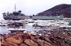 The landing ship sailed for another Far East tour on 28 May 1954 arriving Yokosuka a month later. While operating with 7th Fleet units from August to October, she participated in "Operation Passage to Freedom." She carried refugees, troops and supplies from North Vietnam and transported them to the South. LST-855 continued operating in the Far East; and on 6 February 1955 she was en route to the Tachen Islands to evacuate Nationalist Chinese troops to Formosa when their positions could no longer be defended. Loading 300 troops and vehicles, she departed Tachen Islands on 10 February; and, after off-loading at Keelung, Formosa she resumed duties out of Japan. Returning San Diego on 20 April LST-855 performed amphibious exercises off the West Coast for the remainder of the year. She was named USS Kent County (LST-855) on 1 July 1955. Kent County made her final WestPac cruise in August 1956 engaging in amphibious exercises with 7th Fleet units, then returning to the United States on 14 May 1957 to conduct amphibious exercises off the West Coast and Hawaii.