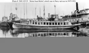 ![]() USS Relief (YP-2), possibly during her 1917-1921 U.S. Navy service | |