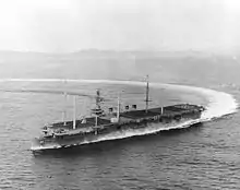 In October, Saipan again sailed south to the Caribbean. Arriving as Hurricane Hazel hit the Greater Antilles, razing areas of Hispaniola, the carrier was immediately assigned to relief work. From 13 to 20 October, she delivered food and medical supplies and personnel to isolated areas of Haiti; then, after being honored by the Haitian government, she returned to Norfolk. On 1 November, she entered the shipyard there for overhaul, and, in April, resumed operations with a cruise to the Caribbean. In June, she was again attached to the aviation training center at Pensacola;[1] and, through the summer, conducted qualification exercises. At the end of September, she was ordered to Mexico to again assist in hurricane relief work. From 1–9 October, her helicopters evacuated survivors, flew in rescue personnel, and distributed food, water and medical supplies, primarily in the flooded Tampico area. On 12 October, she returned to Pensacola, where she remained until April 1957. Between her two training stints from 1946 to 1947 and 1955–1957, carrier pilots were trained on Wright, Cabot and Monterey.[1] On the first of that month, she sailed for Bayonne, New Jersey, where she began inactivation and was decommissioned on 3 October 1957.