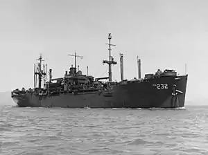 USS San Saba (APA-232) was a Haskell-class attack transport which served with the US Navy in World War II. Commissioned in December 1944, she arrived just too late to see action, and spent the last weeks of the war on transport missions.