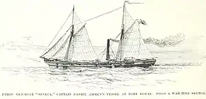 USS Seneca was a Unadilla-class gunboat built on behalf of the United States Navy for service during the American Civil War. Seneca was outfitted with guns for horizontal fire as well as with two howitzers for bombardment of shore targets. With her crew of 84, she was assigned to the Union blockade of the Confederate States of America.