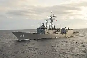 On 18 September 2013, Simpson deployed once more to the United States Sixth Fleet Area of Responsibility. Ports of call included Ponta Delgada, Sicily, Bari, Athens, Valletta, Souda Bay and Casablanca. She returned to Naval Station Mayport on 20 March 2014. Simpson's final homeport was Naval Station Mayport, Florida, with assignment to Destroyer Squadron 14.[17][19] Simpson was part of the Active Naval Reserve Force, Category A from 2002 until her decommissioning in September 2015.[20] She was the final Oliver Hazard Perry-class frigate in service in the United States Navy.[21][22] The ship is set to be put up for foreign military sale.[23]