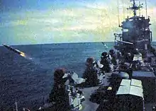 USS St. Francis River a pair of rockets toward enemy positions near Chu Lai, Vietnam in 1966
