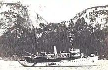 During her Coast and Geodetic Survey career, Surveyor had occasion to assist mariners in distress. After the 153 survivors of the passenger steamer Aleutian – which had struck a rock and sunk with the loss of one crewman off the south end of Amook Island (57°25′30″N 153°50′30″W) in Uyak Bay (57.8000°N 154.0667°W) on the coast of Kodiak Island in the Kodiak Archipelago on 26 May 1929 – reached Larsen Bay on Kodiak Island aboard a small motorboat and a cannery tender, Surveyor picked them up at Larsen Bay and transported them to Seward in Southcentral Alaska.[3][4] On 7 September 1929, she rendered assistance to survivors of the steamer Golden Forest, which was wrecked on Cape Ilktugitak; she located the wreck using radio compass bearings and took aboard two men from Golden Forest for medical treatment.[4] On 31 July 1934, she assisted the steamer SS Otsego, which had grounded off Cape Mordvinof, Alaska.[4]