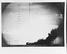 Fearing the approach of an escort, Whale fired a fourth torpedo which ran "hot, straight and normal" for one minute, then circled, heading back in the direction of Whale. "We went to 120 feet (37 m) and prayed", the commanding officer later reported. The erratic torpedo changed its mind after reaching Whale's beam and headed back for the freighter, finally exploding. The target was awash from stern to stack and on fire forward. At morning twilight, the ship was still burning with her bow up and her stern under.
