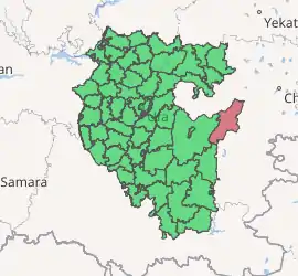 Uchalinsky District (Russian: Учали́нский райо́н; Bashkir: Учалы районы) is an administrative[1] and municipal[8] district (raion), one of the fifty-four in the Republic of Bashkortostan, Russia. It is located in the east of the republic and borders with Chelyabinsk Oblast in the north, east, and south, Abzelilovsky District in the south, and with Beloretsky District in the west. The area of the district is 4,510 square kilometers (1,740 sq mi).[4] Its administrative center is the town of Uchaly[3] (which is not administratively a part of the district).[7] As of the 2010 Census, the total population of the district was 35,480.[5]