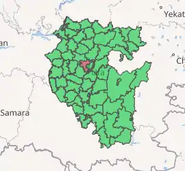 Within the framework of administrative divisions, Ufimsky District is one of the fifty-four in the republic.[1] It is divided into nineteen selsoviets, comprising eighty-nine rural localities.[5] The city of Ufa serves as its administrative center,[3] despite being incorporated separately as a city of republic significance—an administrative unit with the status equal to that of the districts.[5]