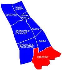 ![]() Location of Ujazdów neighbourhood (red) in the District of Śródmieście (navy blue) | |