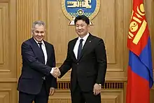 He has also served as a mediator between Japan and North Korea.[23] Khürelsükh made an official visit to Japan in December 2018 and met Prime Minister Shinzo Abe to reiterate close bilateral cooperation as part of a Japan-Mongolia Summit Meeting. Following the summit meeting the signing of the “Memorandum of Cooperation Between the Ministry of the Environment of Japan and the Ministry of Environment and Tourism of Mongolia on Environmental Cooperation” took place in the presence of the two leaders, and a Japan-Mongolia joint statement and fact sheet for the “Japan-Mongolia Mid-term Action Plan for a Strategic Partnership” were also issued.[24] The two sides also discussed about the New Ulaanbaatar International Airport.