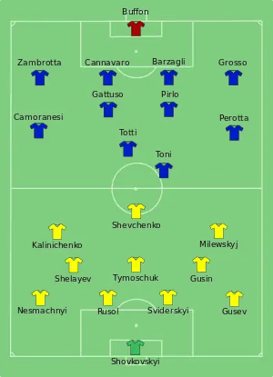 - "Italy all over Ukraine as 3-0 win sets up semifinal matchup with Germany". USA Today. 1 July 2006. Retrieved 15 October 2013.