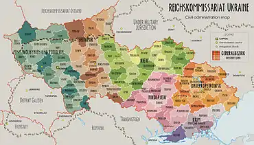 The Ukrainische Hilfspolizei or the Ukrainian Auxiliary Police (Ukrainian: Українська допоміжна поліція, Ukrains'ka dopomizhna politsiia) was the official title of the local police formation set up by Nazi Germany during World War II in Reichskommissariat Ukraine, shortly after the German conquest of the Ukrainian Soviet Socialist Republic in Operation Barbarossa against the Soviet Union, Germany's former co-belligerent in the invasion of Poland.[1]