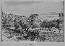 In the mid-19th century the cultivar was present in the park of Highfield House Observatory, home of botanist and astronomer Edward Joseph Lowe (now part of University Park, Nottingham). It alternated with 'Canadian Giant' in an avenue at Chilwell Hall,[7] where it grew twice as quickly as 'Giant'.[1] When Nottingham Park below Nottingham Castle (also known as The Park, Nottingham, now The Park Estate) was turned into a residential area with large houses and gardens, 'Siberian elms' from Castle Nurseries "were freely planted from 1855 along the newly laid out roads, the earliest to be planted being those in Tunnel Road, which got a start of their neighbours".[2] In 1930 local historian J. Holland Walker attributed the "present leafy condition of The Park" to this 1850s' planting of the Castle Nurseries clone.[2][8] In 1865 the architect Thomas Chambers Hine, writing to the Chairman of the Basford Local Board of Health on the proposed new thoroughfare from Basford to Carrington, recommended for the adjoining footpath "a row of Siberian elms [: 'Nottingham Elm'], planted 25 or 30 feet apart, with proper cradling for the trees when young".[9]