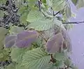 No specimens are known to survive. One tree obtained from the Späth nursery in Berlin was planted in 1893 at the Dominion Arboretum, Ottawa, Canada.[6] Introduced to the USA, U. campestris var. corylifolia purpurea, "Purple filbert-leaved elm", was marketed by the Ellwanger & Barry and Perry nurseries of Rochester, N.Y., from the late 19th century.[7][8] Three specimens were supplied by Späth to the Royal Botanic Garden Edinburgh in 1902 as U. campestris 'Corylifolia purpurea', and may survive in Edinburgh as it was the practice of the Garden to distribute trees about the city (viz. the Wentworth Elm).[9] A specimen obtained from Späth stood in the Ryston Hall arboretum, Norfolk,[10] in the early 20th century.[11]