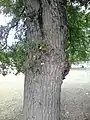 Three trees supplied by Späth to the Royal Botanic Garden Edinburgh (RBGE) in 1902 as U. campestris umbraculifera gracilis[11] survive in Edinburgh (2019). The two oldest, planted in the Garden itself (one of which is base-grafted), were long known by an updated version of Melville's name for them, U. plotii × U. carpinifolia [12] (:U. minor 'Plotii' × U. minor).[13] It is known that Melville renamed some of Späth's trees at RBGE in 1958.[14] These two were, according to one RBGE herbarium sheet, formerly called U. campestris umbraculifera (see 'External links'),[15] the name of the parent tree (not present in RBGE) of 'Umbraculifera Gracilis'. A herbarium specimen from Amsterdam labelled U. carpinifolia Gled. f. 'Gracilis' var. (Späth) Rehd. matches the Edinburgh trees.[note 1] Taken together, the evidence suggested that the three Edinburgh trees (the third, with smaller bole-girth, is on Bruntsfield Links) were the clone Späth supplied as U. campestris 'Umbraculifera Gracilis', an identification confirmed in 2016 by RBGE.[16] It is not known why Melville was permitted to disregard the trees' documented Central Asian provenance, and pronounce them hybrids of Plot Elm, a local variety of English field elm.