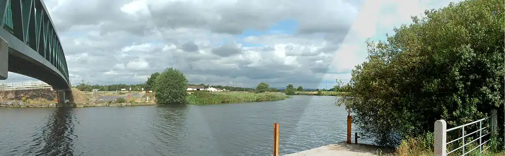 The original plans were to embank the Tall River and the Callan River, which joined together to the south of Clonmain and flowed into the Blackwater below Charlemont bridge. This aspect of the project was reworked, and a new straight cut was made from a point on the Tall River to the north of Clonmain, crossing Sir William Verner's bog, and rejoining the Blackwater just above Verner's Bridge, some 5 miles (8 km) below the original confluence. This had the advantage that under flood conditions, the water level in the Blackwater was from 4 to 5 feet (1.2 to 1.5 m) lower than that further upstream. The channel below Verner's Bridge was also considerably wider, and so could better cope with the volumes of water discharged by the two tributaries.[8]