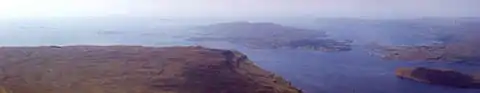 There are a number of smaller islets and rocks off Ulva. To the south and the east are Eilean na Creiche (listed as "Eilean na Craoibhe", on the island's guide's map.)[11] between Little Colonsay and Ulva. Off Port a' Bhàta are Geasgill Beag & Geasgill Mòr, between Ulva and Inchkenneth. To the south west is Sgeir na Sgeireadh, and Màisgeir due south of Gometra. These islands, along with Ulva itself, form part of the Loch na Keal National Scenic Area,[12] one of the forty national scenic areas in Scotland, which are defined so as to identify areas of exceptional scenery and to ensure its protection from inappropriate development.[13]
