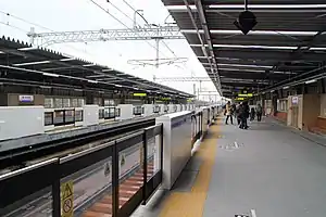 Umekōji-Kyōtonishi Station (梅小路京都西駅, Umekōji-Kyōtonishi-eki) is a railway station located in Kankijichō, Shimogyō Ward, Kyoto.[1] The station was opened on 16 March 2019, and operated by West Japan Railway Company (JR West), with station number JR-E02. The station is served by the Sagano Line (Sanin Main Line).