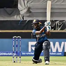 ![]() Thimashini batting for Sri Lanka during the 2020 ICC Women's T20 World Cup | |