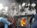 The firebox of Maureen, a 1912 built Class 3BR locomotive No.1486