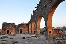 The Islamic era at Umm el-Jimal began in 640 when the Rashidun Caliphs took control of the area. Much remodeling was done throughout the site so as to repurpose buildings to suit their own needs. The Praetorium and House XVIII are examples of buildings repurposed as dwelling places, while House 53 was possibly repurposed into a mosque. Despite all of this, the population decreased and the site was slowly abandoned with the help of an earthquake in circa 749 that destroyed many buildings and set much of the architecture off balance. The site was completely deserted under the Abbasid Caliphs in the ninth century.[2]