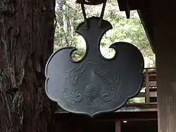 An umpan (umpan (雲版), Chinese: 雲版; pinyin: yún bǎn, literally "cloud plate") is a flat gong, usually bronze, which is rung at mealtime in a Zen monastery. Literally translated as "cloud plate," the umpan is also sounded to "signal other events,"[1] such as a call to the conclusion of zazen.[2] Typically one will find an umpan outside the kitchen (J. kuri) or dining hall area. According to Helen J. Baroni, "Wooden boards (han) hanging on various buildings throughout the temple grounds are sounded simultaneously to alert the members of the community beyond the range of the umpan."[1]