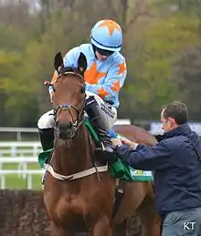 Un de Sceaux (foaled 5 May 2008; French pronunciation: [ɛ̃ də so]) is a French-bred AQPS racehorse who completed in National Hunt racing. After winning both his races in France he was transferred to Ireland where he won two novice hurdles. In the 2013/14 National Hunt season he was undefeated in five races including the Red Mills Trial Hurdle in Ireland and both the Prix Hypothese and the Prix Leon Rambaud in France. When switched to steeplechases he recovered from a fall on his debut to win the Arkle Novice Chase, Arkle Challenge Trophy and Ryanair Novice Chase in the 2014–15 season. In 2015–16 he won the Clarence House Chase but was beaten by Sprinter Sacre when favourite for the Queen Mother Champion Chase in what was his first defeat when completing a steeplechase. He began the 2016–17 with a win in the Tingle Creek Chase and followed up with his second victory in the Clarence House Chase before taking the Ryanair Chase in March. In 2018 Un de Sceaux became the first horse in history to win three Clarence House chases but was disappointed in Cheltenham by Balko des Flos when attempting to regain his Ryanair crown. He finished the season on a high by winning the devenish chase at Fairyhouse before surprising his stablemate Douvan at Punchestown under Patrick Mullins. At this stage of his career Un de Sceaux has won 9 Grade ones and has earned over 1,300,000 in prize money.