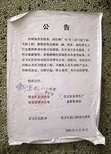 The Underground City (Chinese: 地下城; pinyin: Dìxià Chéng) is a Cold War era bomb shelter consisting of a network of tunnels located beneath Beijing, China. It has also been referred to as the Underground Great Wall since it was built for the purpose of military defense. The complex was constructed from 1969 to 1979 in anticipation of a nuclear war with the Soviet Union, as Sino-Soviet relations worsened[1][2] and was officially reopened in 2000.[3] Visitors were allowed to tour portions of the complex,[3] which has been described as "dark, damp, and genuinely eerie".[4] Underground City has been closed for renovation since at least February 2008.[1]
