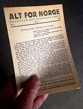 The first underground newspapers in occupied Norway were published by the nascent Norwegian resistance movement in the summer of 1940, soon after the conclusion of the Norwegian Campaign. The main purpose of the underground newspapers was to distribute news from BBC Radio, as well as messages and appeals from the Norwegian government in exile.[38]