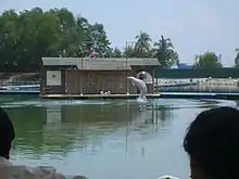 The Dolphin Lagoon was home to several Indo-Pacific humpback dolphins, also known as the "pink dolphins". Several "Meet-the-Dolphins" sessions were held daily that allowed visitors to enter the waist-deep pool and interact closely with the dolphins. The ticket to the Underwater World & dolphin show did not include the direct contact with the dolphins, an additional photo-coupon had to be purchased. The lagoon also included a Dolphin Suite where visitors could watch the dolphin performance from within an air-conditioned area.[1]