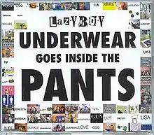 "Underwear Goes Inside the Pants" is a song by Lazyboy, which is a musical project combining spoken word with hip-hop beats and other musical styles, with vocals on this track by stand-up comedian Greg Giraldo. Giraldo speaks in an observational humor style critical of American society, discussing issues such as the legalization of marijuana, the homeless problem, and the "obesity epidemic". The accompanying music video was shot in Los Angeles with members of the homeless singing the chorus. The song was a hit in Australia, reaching number five. It was released in the UK on 21 August 2006, and it peaked at number thirty on the UK Singles Chart.
