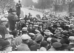 In 1547, a bill was passed that subjected vagrants to some of the more extreme provisions of the criminal law, namely two years' servitude and branding with a "V" as the penalty for the first offence and death for the second.[13] In the 1576 Act each town was required to provide work for the unemployed.[14]