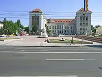 Union Monument (Romanian: Monumentul Unirii), a monument of white marble in the Romanian city of Iaşi, was designed by Princess Olga Sturdza and unveiled in 1927 at the base of Carol Boulevard. It consists of a central piece (the Motherland) and four smaller ones representing the historic provinces of Transylvania, Bessarabia and Bukovina (incorporated into Romania at the end of World War I) and the Romanian diaspora. Demolished in 1947 as the Romanian Communist Party was tightening its grip on the country, it was rebuilt in 1999, this time being placed in Piaţa Naţiunii, in front of the Grigore T. Popa University of Medicine and Pharmacy.